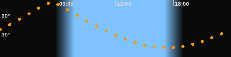 | Höchster Stand (Kulmination) | 05:20 Uhr (h = 86,4°) |