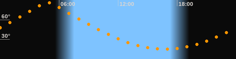 | Höchster Stand (Kulmination) | 04:49 Uhr (h = 86,4°) |