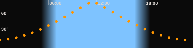 | Höchster Stand (Kulmination) | 11:31 Uhr (h = 86,4°) |