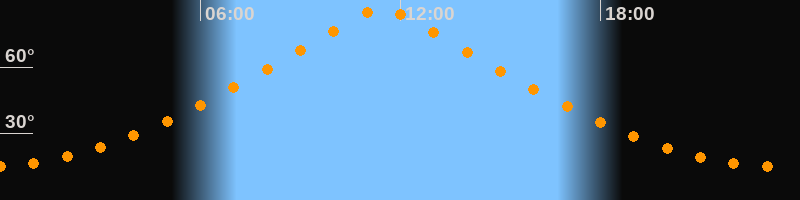 | Höchster Stand (Kulmination) | 11:27 Uhr (h = 86,4°) |