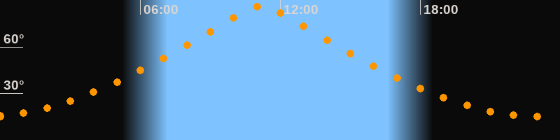 | Höchster Stand (Kulmination) | 11:11 Uhr (h = 86,4°) |