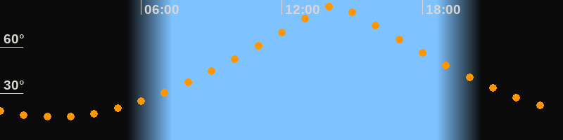 | Höchster Stand (Kulmination) | 14:14 Uhr (h = 86,4°) |