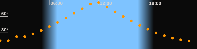 | Höchster Stand (Kulmination) | 11:40 Uhr (h = 86,4°) |