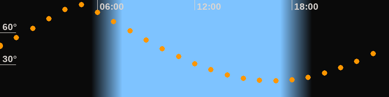| Höchster Stand (Kulmination) | 04:51 Uhr (h = 86,4°) |