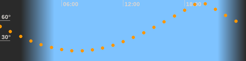 | Höchster Stand (Kulmination) | 19:33 Uhr (h = 86,4°) |