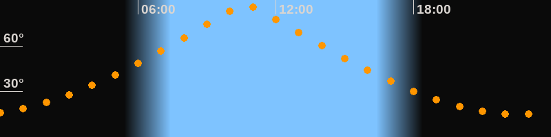 | Höchster Stand (Kulmination) | 10:42 Uhr (h = 86,4°) |