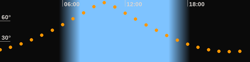 | Höchster Stand (Kulmination) | 09:58 Uhr (h = 86,4°) |