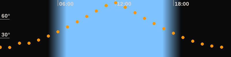 | Höchster Stand (Kulmination) | 11:49 Uhr (h = 86,4°) |