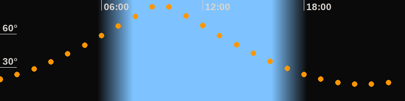 | Höchster Stand (Kulmination) | 09:31 Uhr (h = 86,4°) |