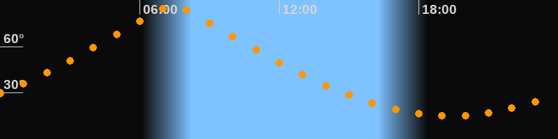 | Höchster Stand (Kulmination) | 07:25 Uhr (h = 86,4°) |