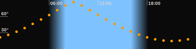 | Höchster Stand (Kulmination) | 09:00 Uhr (h = 86,4°) |