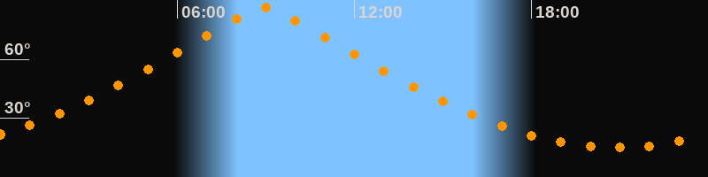 | Höchster Stand (Kulmination) | 08:56 Uhr (h = 86,4°) |