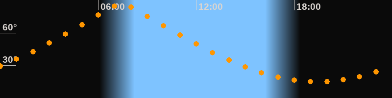 | Höchster Stand (Kulmination) | 07:26 Uhr (h = 86,4°) |