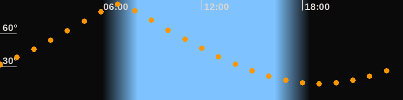 | Höchster Stand (Kulmination) | 07:02 Uhr (h = 86,4°) |