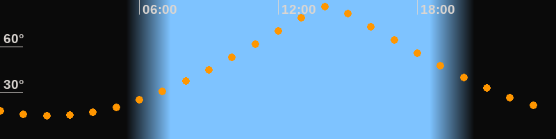 | Höchster Stand (Kulmination) | 14:09 Uhr (h = 86,4°) |