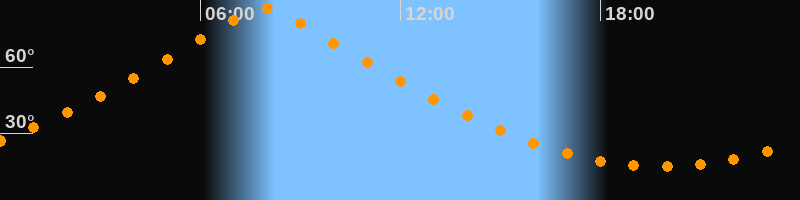 | Höchster Stand (Kulmination) | 07:54 Uhr (h = 86,4°) |