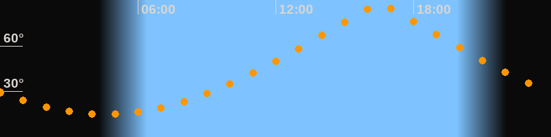| Höchster Stand (Kulmination) | 16:31 Uhr (h = 86,4°) |