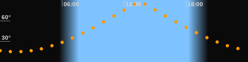 | Höchster Stand (Kulmination) | 13:30 Uhr (h = 86,4°) |