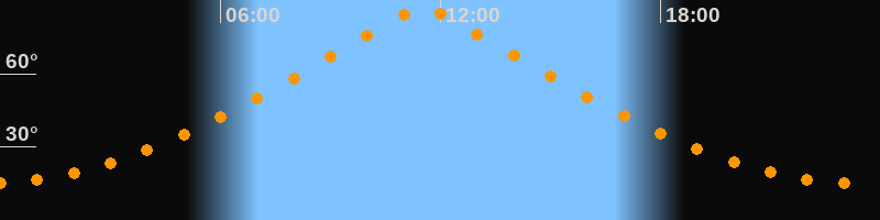 | Höchster Stand (Kulmination) | 11:31 Uhr (h = 86,4°) |