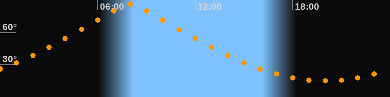 | Höchster Stand (Kulmination) | 07:59 Uhr (h = 86,4°) |