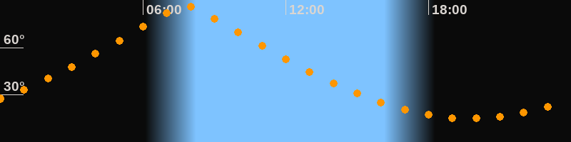 | Höchster Stand (Kulmination) | 07:47 Uhr (h = 86,4°) |