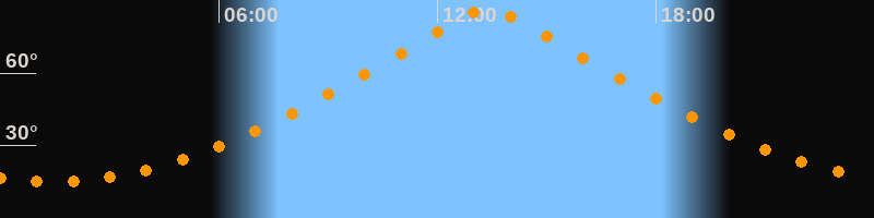 | Höchster Stand (Kulmination) | 13:24 Uhr (h = 86,4°) |