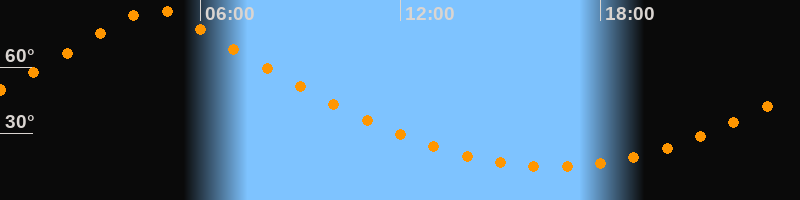 | Höchster Stand (Kulmination) | 04:36 Uhr (h = 86,4°) |