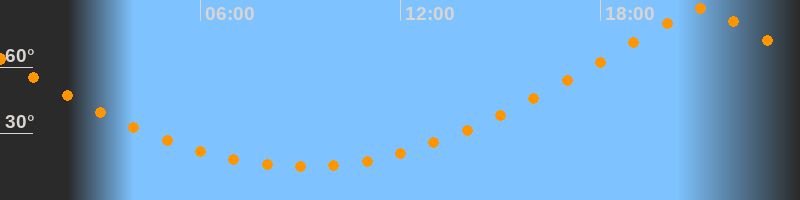 | Höchster Stand (Kulmination) | 21:03 Uhr (h = 86,4°) |