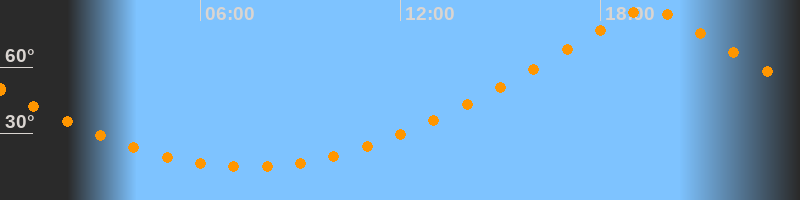 | Höchster Stand (Kulmination) | 19:25 Uhr (h = 86,4°) |