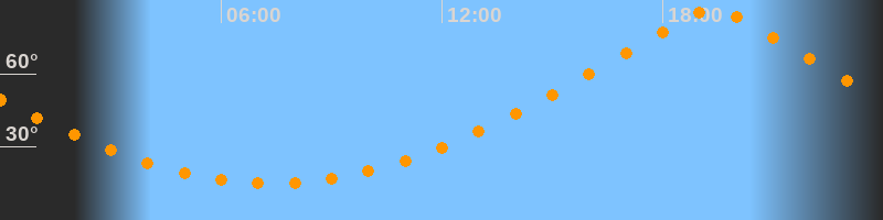 | Höchster Stand (Kulmination) | 19:21 Uhr (h = 86,4°) |