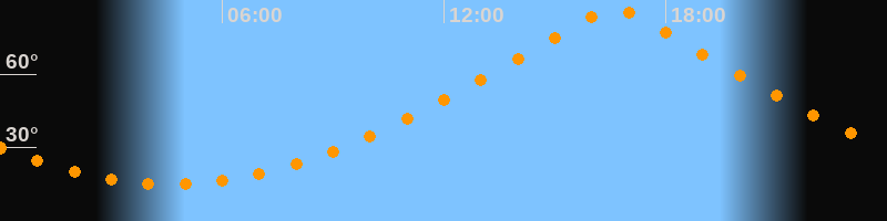 | Höchster Stand (Kulmination) | 16:36 Uhr (h = 86,4°) |