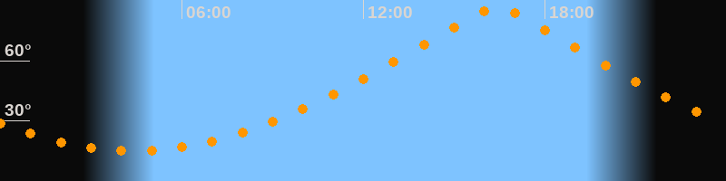 | Höchster Stand (Kulmination) | 16:24 Uhr (h = 86,4°) |
