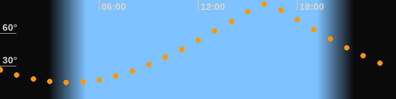 | Höchster Stand (Kulmination) | 16:05 Uhr (h = 86,4°) |