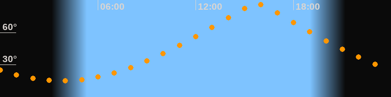 | Höchster Stand (Kulmination) | 15:45 Uhr (h = 86,4°) |