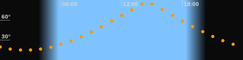 | Höchster Stand (Kulmination) | 14:30 Uhr (h = 86,4°) |