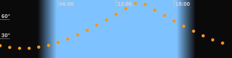 | Höchster Stand (Kulmination) | 14:22 Uhr (h = 86,4°) |