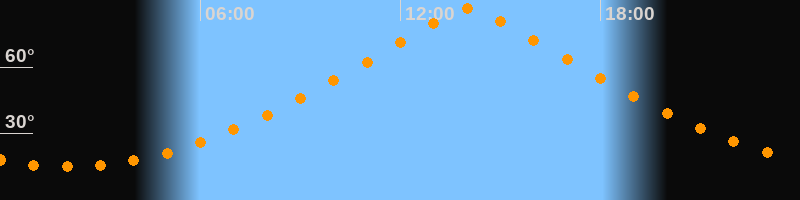 | Höchster Stand (Kulmination) | 14:03 Uhr (h = 86,4°) |