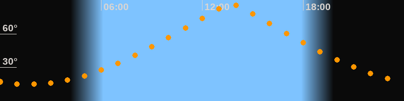 | Höchster Stand (Kulmination) | 13:43 Uhr (h = 86,4°) |