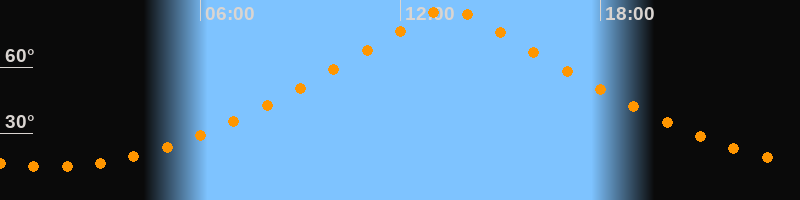 | Höchster Stand (Kulmination) | 13:27 Uhr (h = 86,4°) |