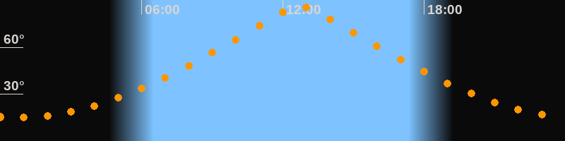 | Höchster Stand (Kulmination) | 12:44 Uhr (h = 86,4°) |