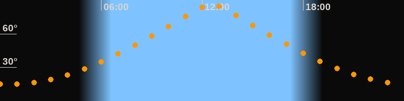 | Höchster Stand (Kulmination) | 12:32 Uhr (h = 86,4°) |