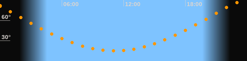 | Höchster Stand (Kulmination) | 23:06 Uhr (h = 86,4°) |