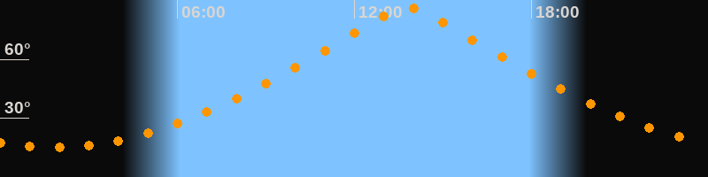 | Höchster Stand (Kulmination) | 13:48 Uhr (h = 86,4°) |