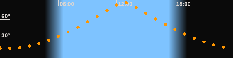 | Höchster Stand (Kulmination) | 12:45 Uhr (h = 86,4°) |
