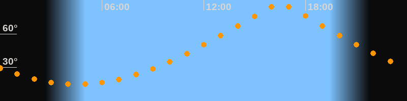 | Höchster Stand (Kulmination) | 16:30 Uhr (h = 86,4°) |