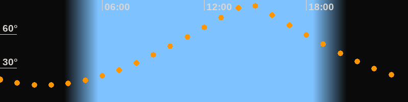 | Höchster Stand (Kulmination) | 14:36 Uhr (h = 86,4°) |