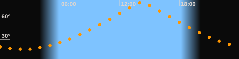 | Höchster Stand (Kulmination) | 14:13 Uhr (h = 86,4°) |