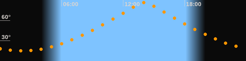 | Höchster Stand (Kulmination) | 14:05 Uhr (h = 86,4°) |