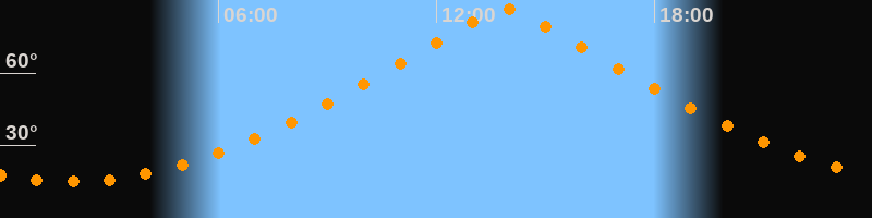 | Höchster Stand (Kulmination) | 13:53 Uhr (h = 86,4°) |