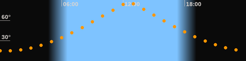 | Höchster Stand (Kulmination) | 12:34 Uhr (h = 86,4°) |